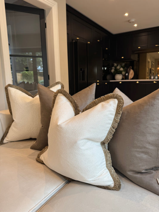 Betty Ivory Boucle 20” Fringed Cushion
