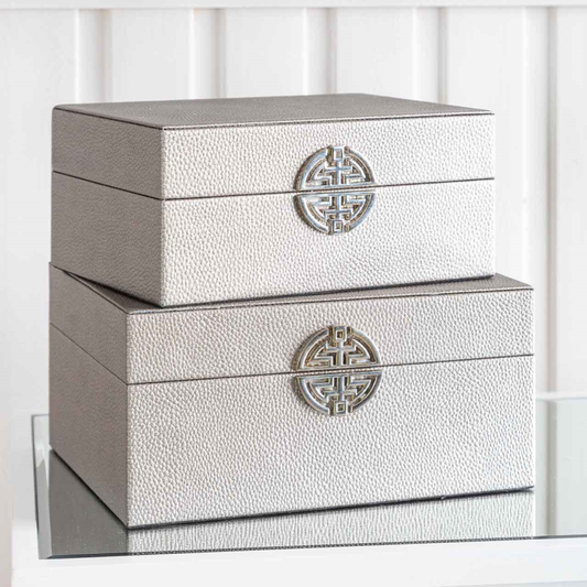 White Faux Leather Gold Buckle Storage Boxes Set Of 2