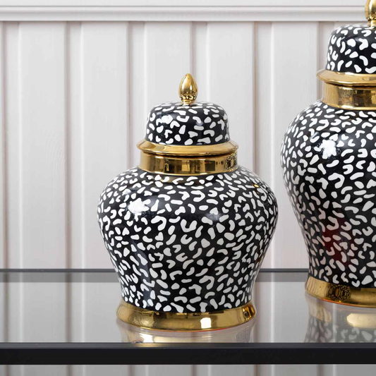 Alessa 30cm Black and White Leopard Print Ginger Jar