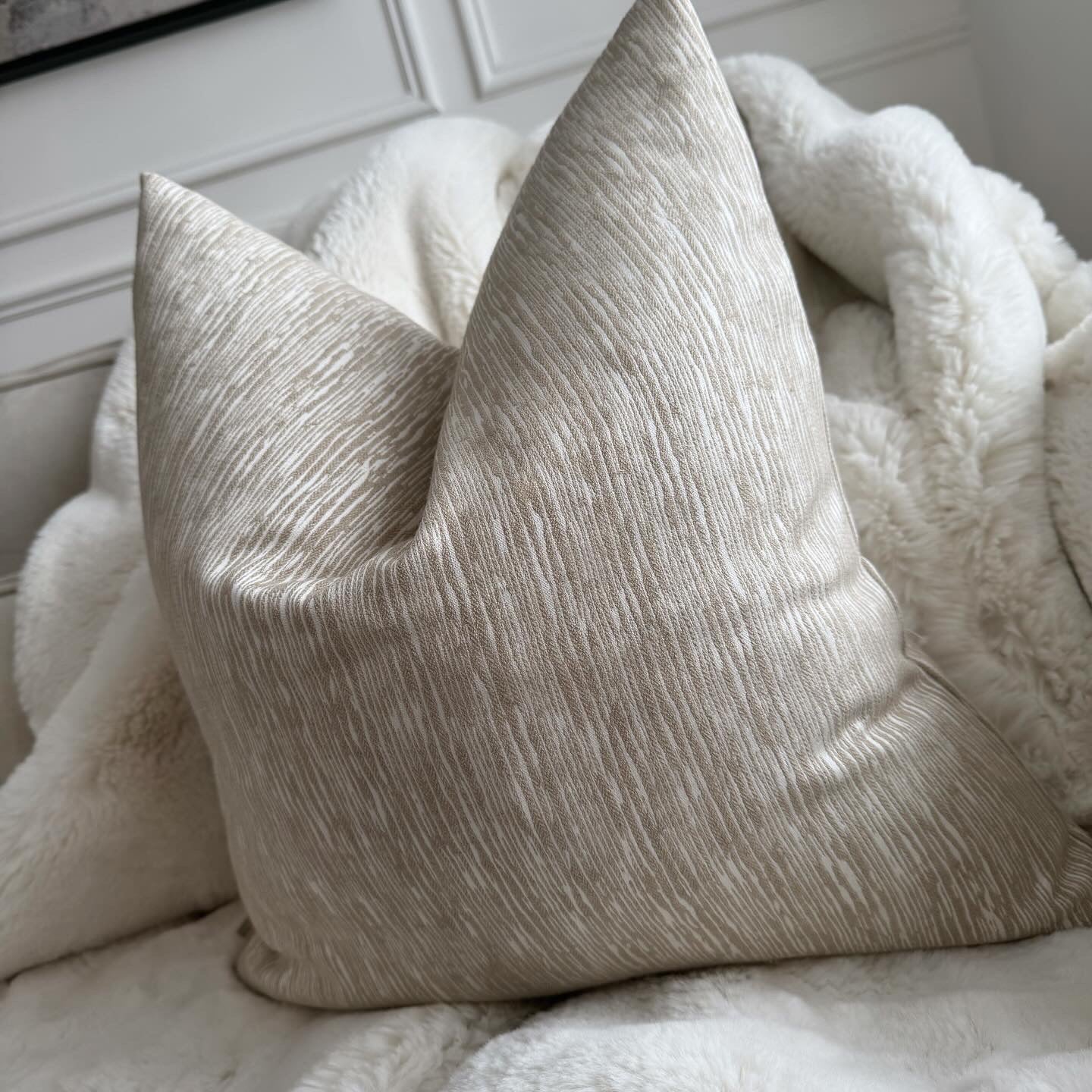 Introducing the Adelaide Beige Embossed Line Effect Textured 20" Cushion, where comfort meets sophistication in a harmonious blend of design and luxury. Elevate your living space with this exquisite accent piece, meticulously crafted to add a touch of elegance to any room.