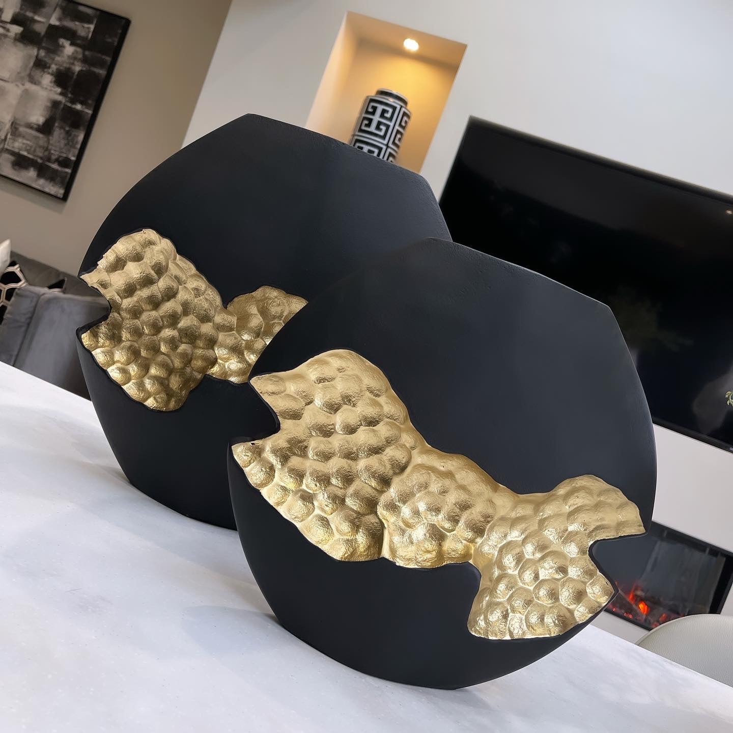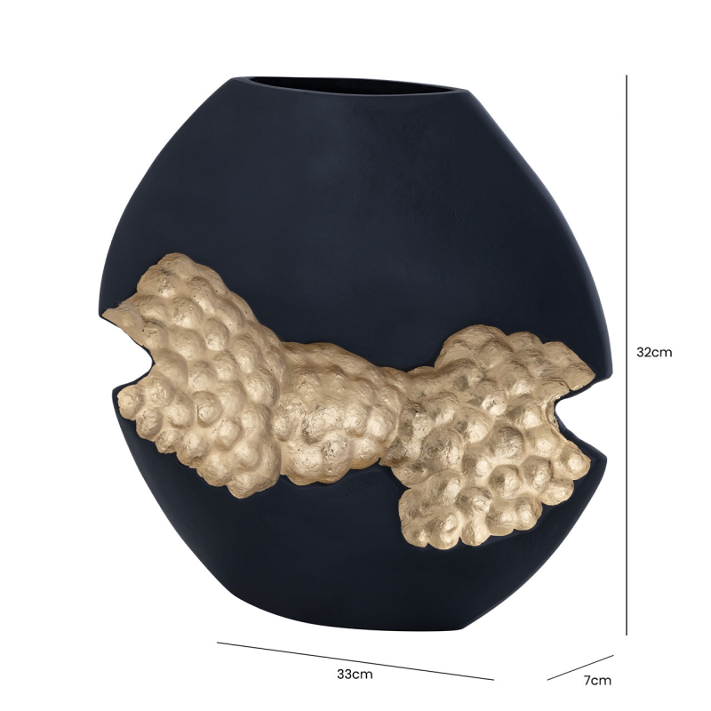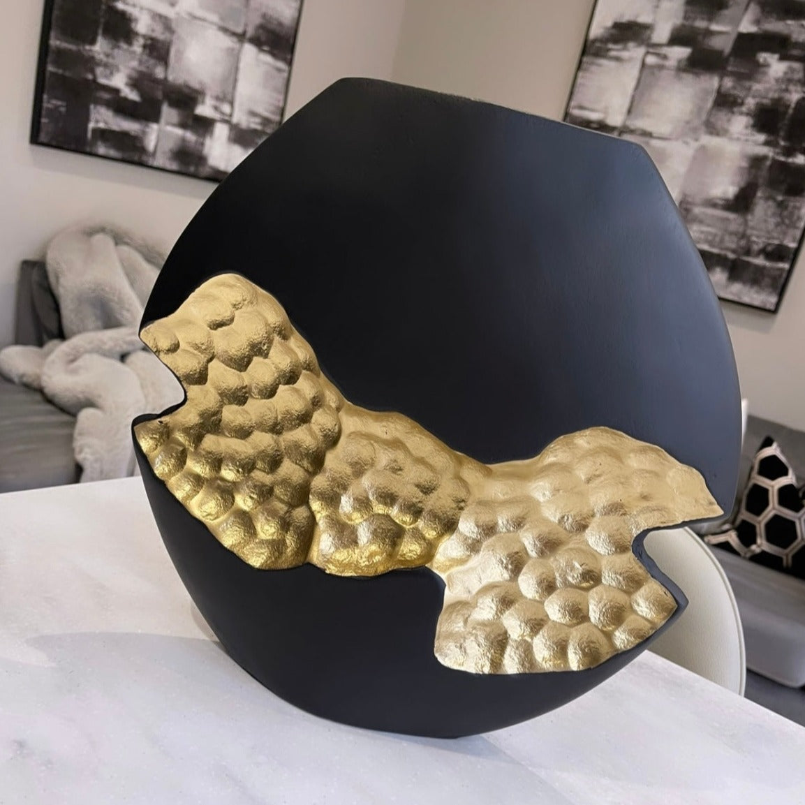 Anouska Black and Gold Round 32cm Vase - PRE ORDER