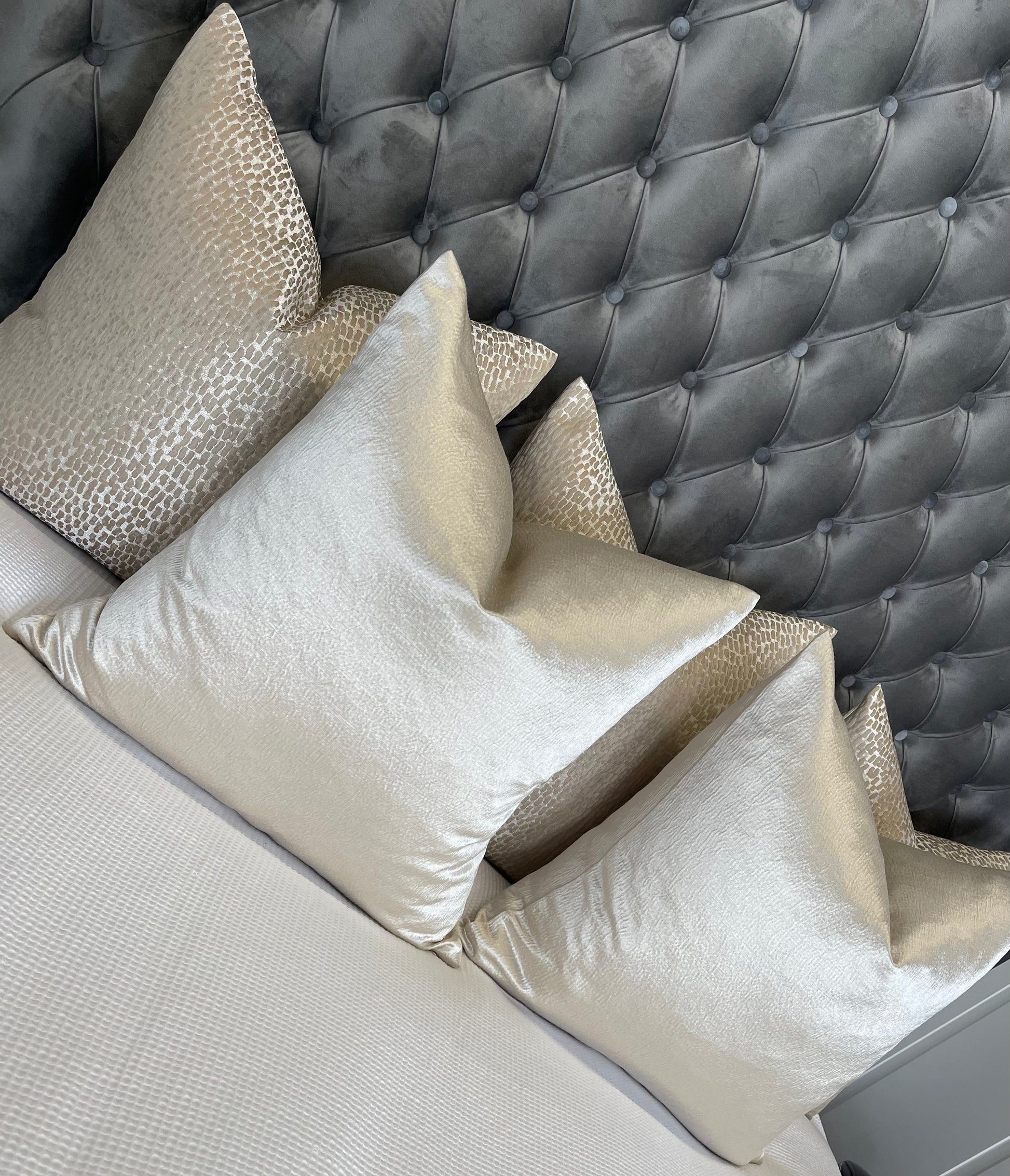 This stunning naturally sheen light putty/ Champagne coloured fabric is perfect as an additional cushion for any set. Its natural solid colour and beautiful textures running throughout makes this a perfect individual cushion.