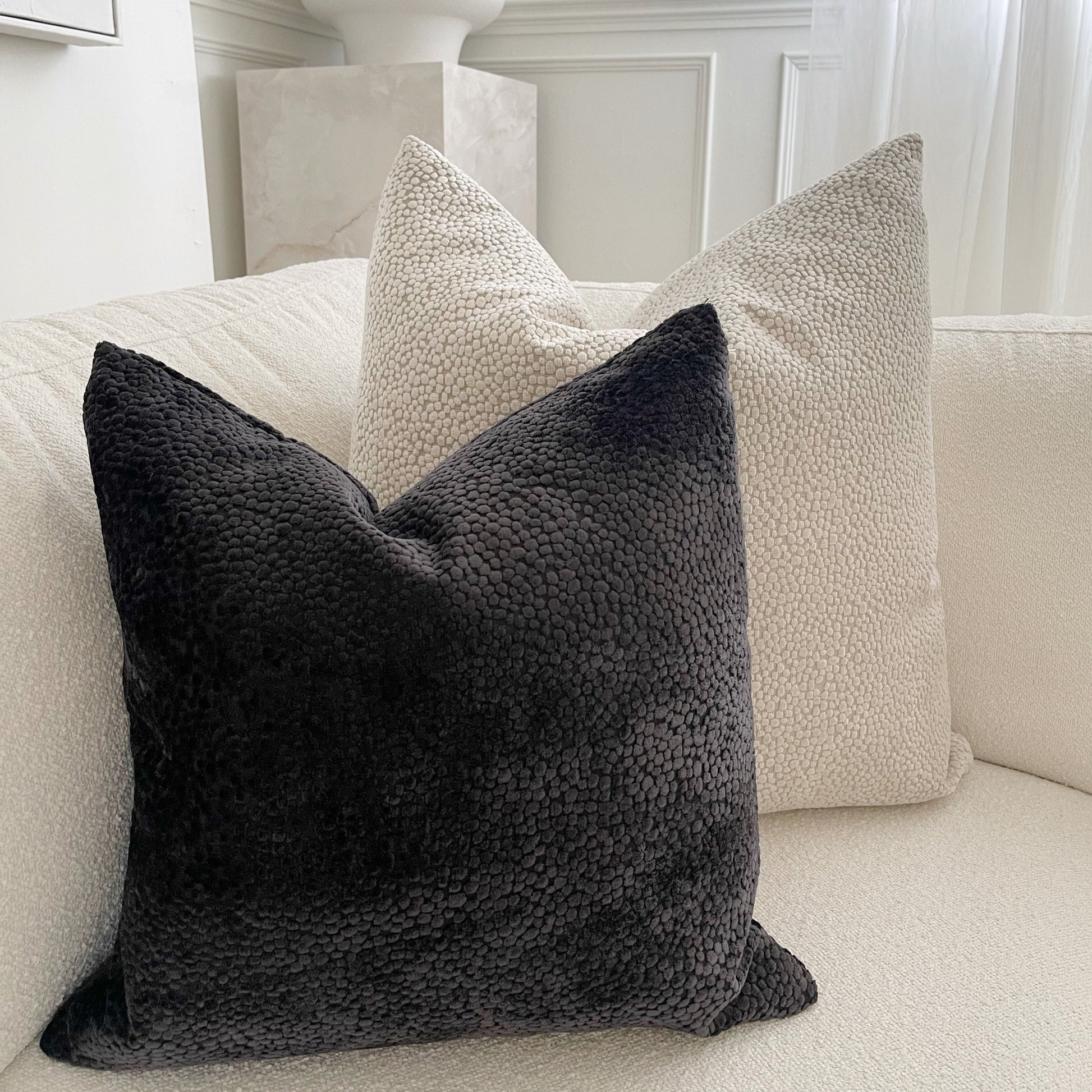 This textured design of matte cut velvet dots in black colour will add a contemporary feel to any room. Luxury feather filled.