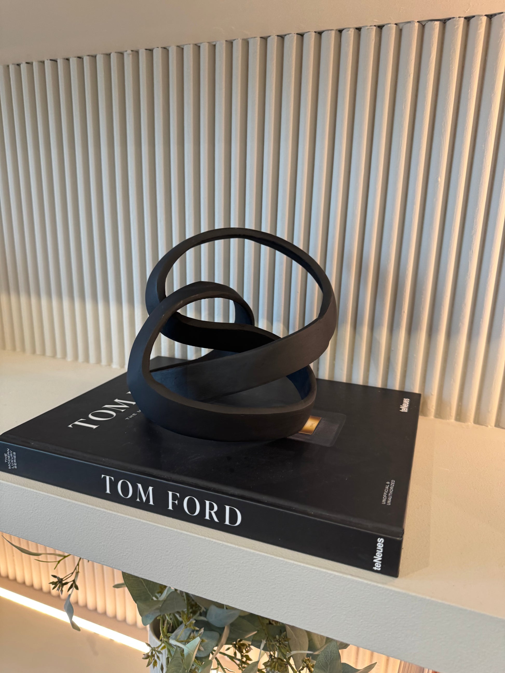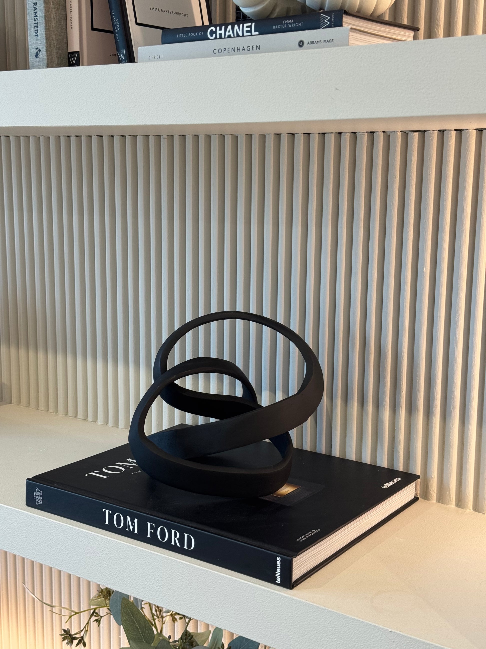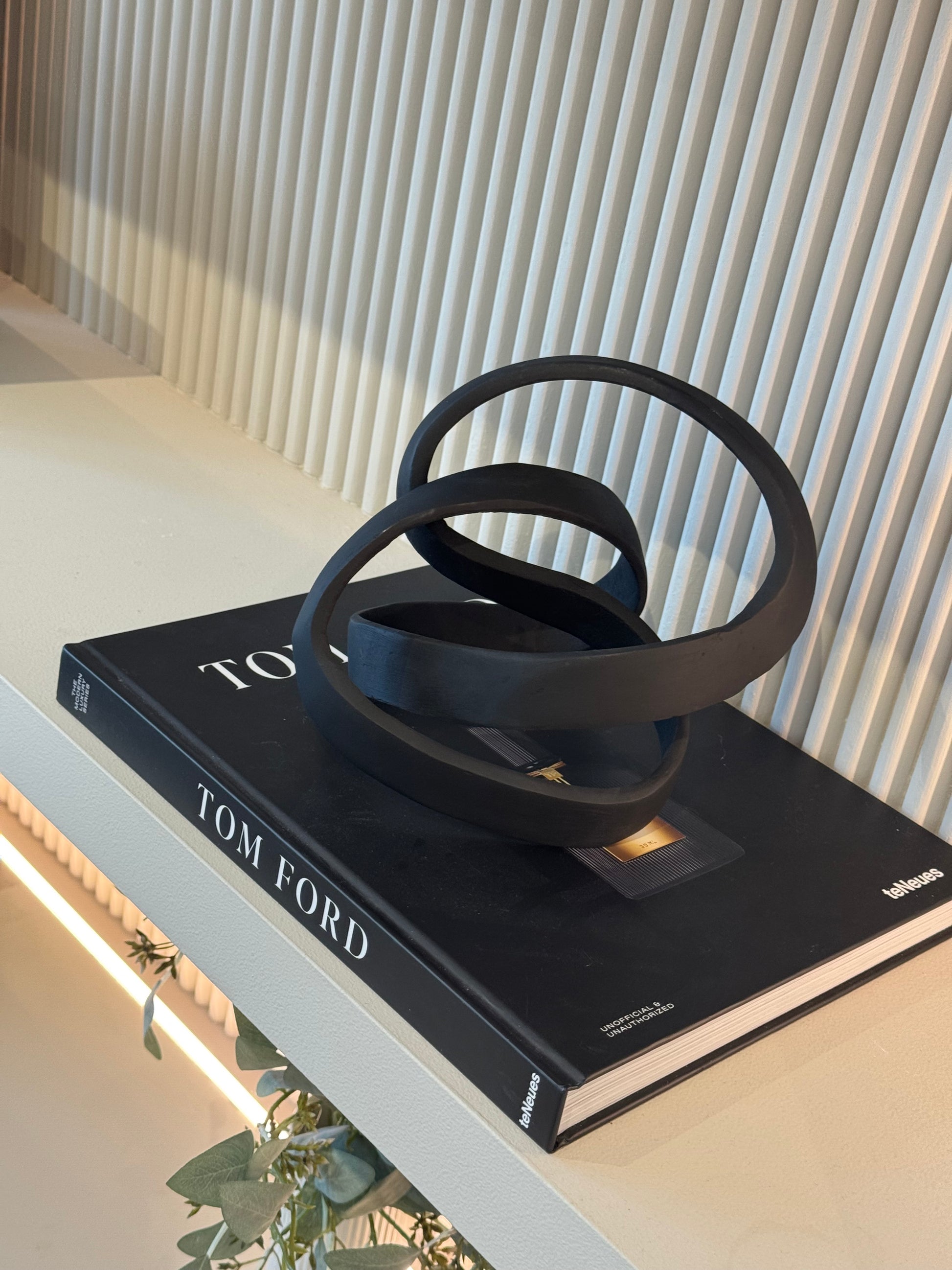 A sculptural statement piece that embodies modern artistry. The Black Cast Knot Ornament features a fluid, interwoven form crafted with seamless precision, creating a captivating play of light and shadow across its deep matte black surface. Its architectural curves bring a sense of movement and balance, making it a striking focal point for contemporary interiors.