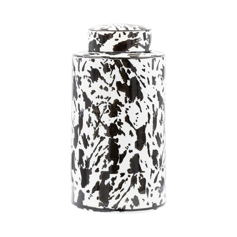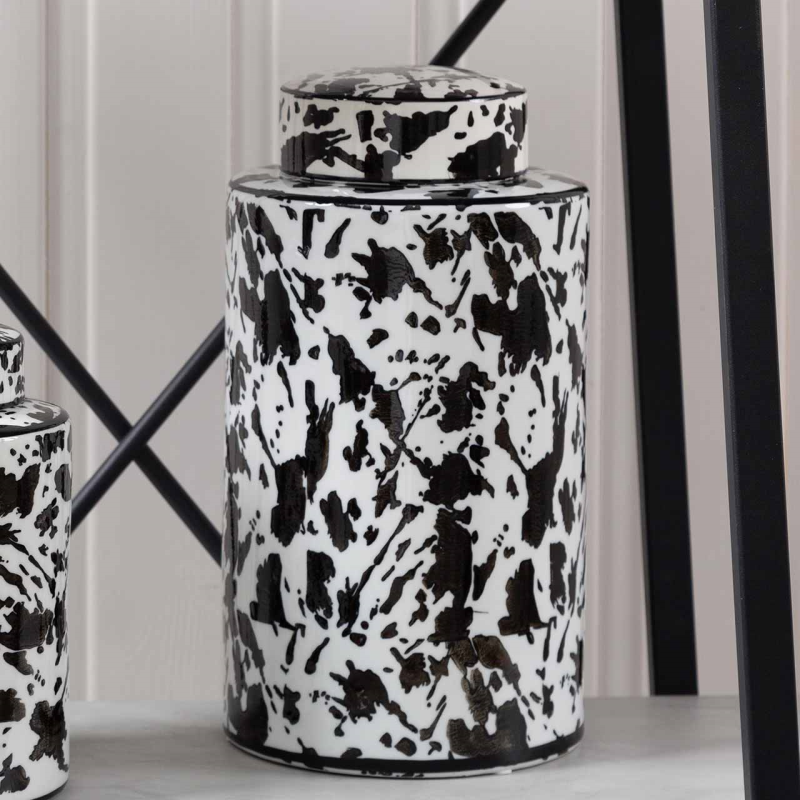The stunning Bria 30cm black and white abstract expressionist design cylindrical ginger jar has an eye-catching pattern and sleek cylindrical shape, this jar is sure to impress. Made from quality materials, it's durable enough to last for years to come.