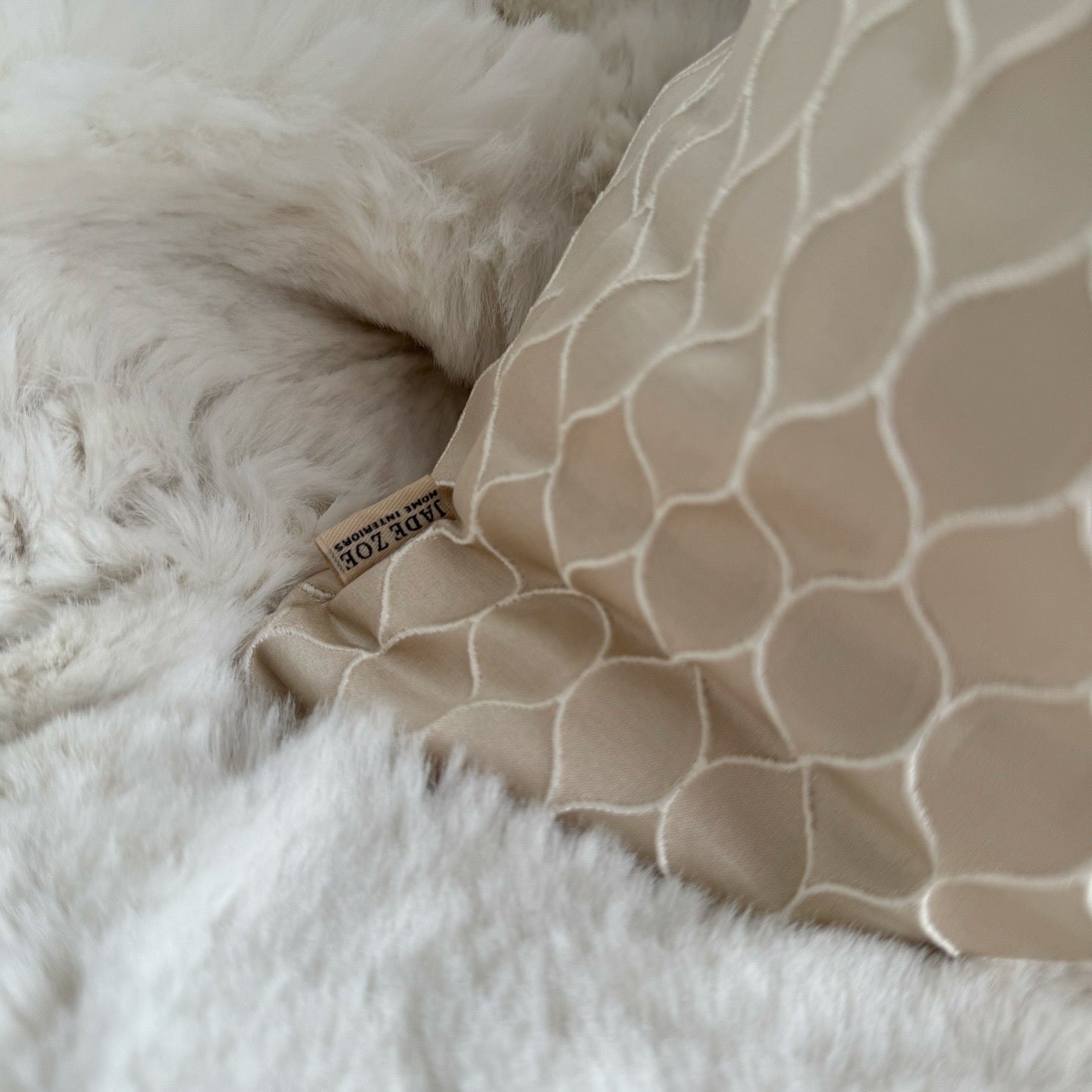 Introduce a touch of opulence to your home decor with our bespoke Cinder champagne cushion. This exquisite 20" cushion is the epitome of elegance, featuring a stunning 3D patterned design that is sure to catch the eye and enhance any living space.