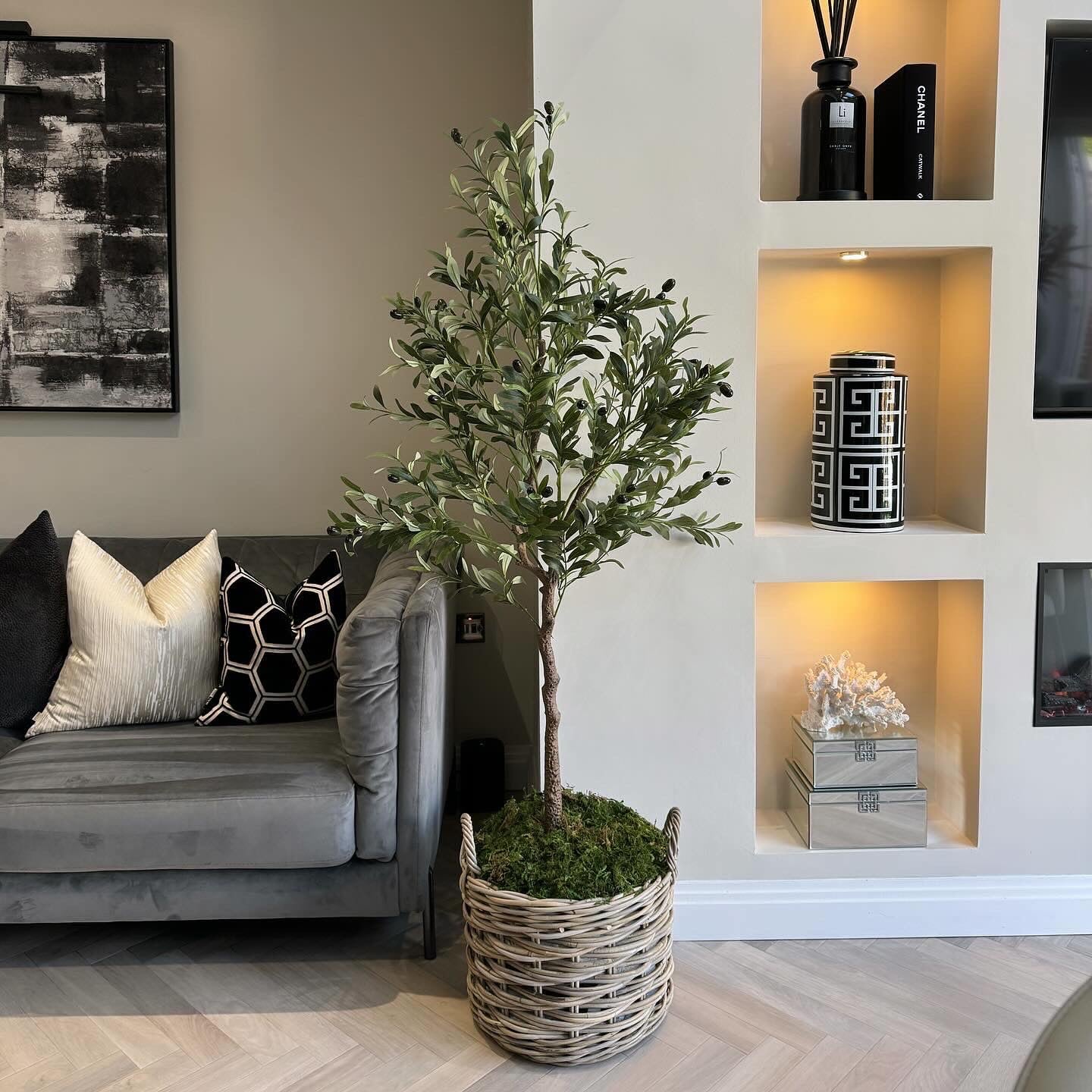 Every detail of this faux olive tree has been produced to mimic nature and give year round enjoyment. Why not display in one of our wicker baskets to introduce further natural texture to a space.