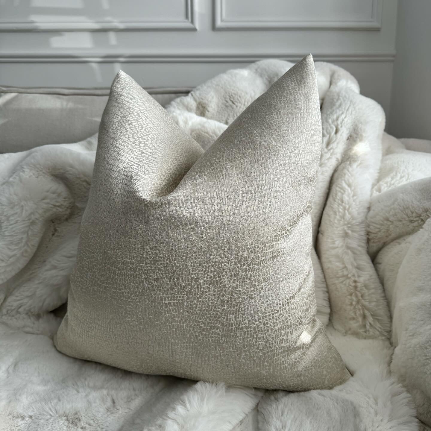 The true allure of the Elias Cream Cushion lies in its textured sheen fabric. With an embossed crackle pattern, it exudes a sense of opulence and sophistication. Each detail has been carefully crafted, creating a mesmerising visual and tactile experience that adds depth and allure to your space.