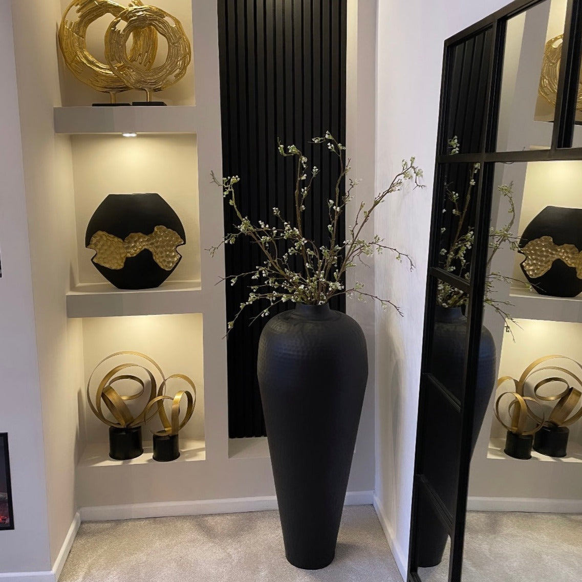 Whether you use it to display tall faux flowers or as a standalone piece, the Felix Matt Black Large Hammered Vase Without Lid is sure to make a bold and stylish statement in any room of your home or office.