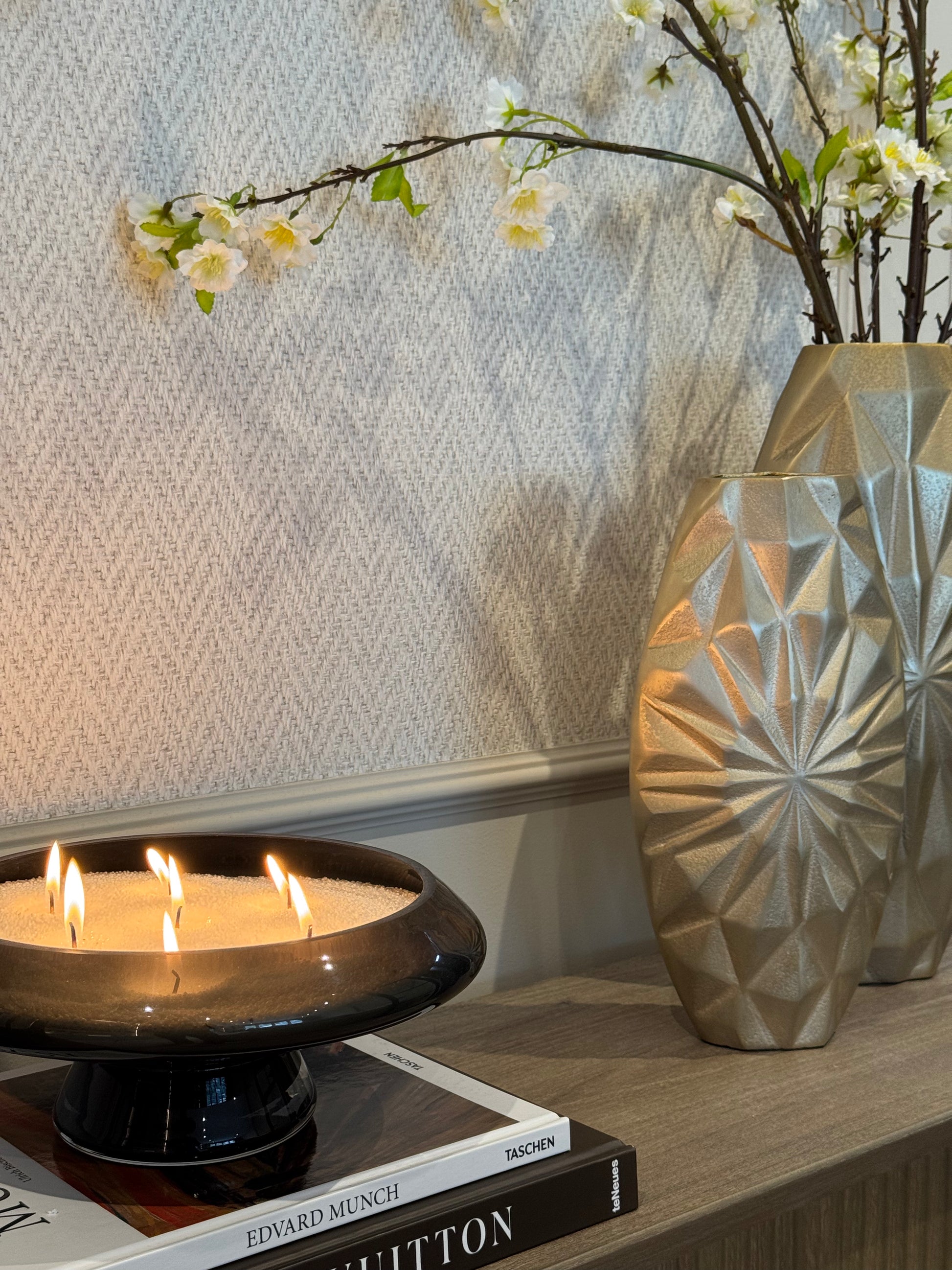 Sleek, sculptural, and effortlessly refined, The Hatton Vase is a contemporary decorative piece crafted from high-quality cast aluminium. Its understated oval silhouette is elevated by a distinctive angled pattern, adding visual depth and modern artistry to its form.