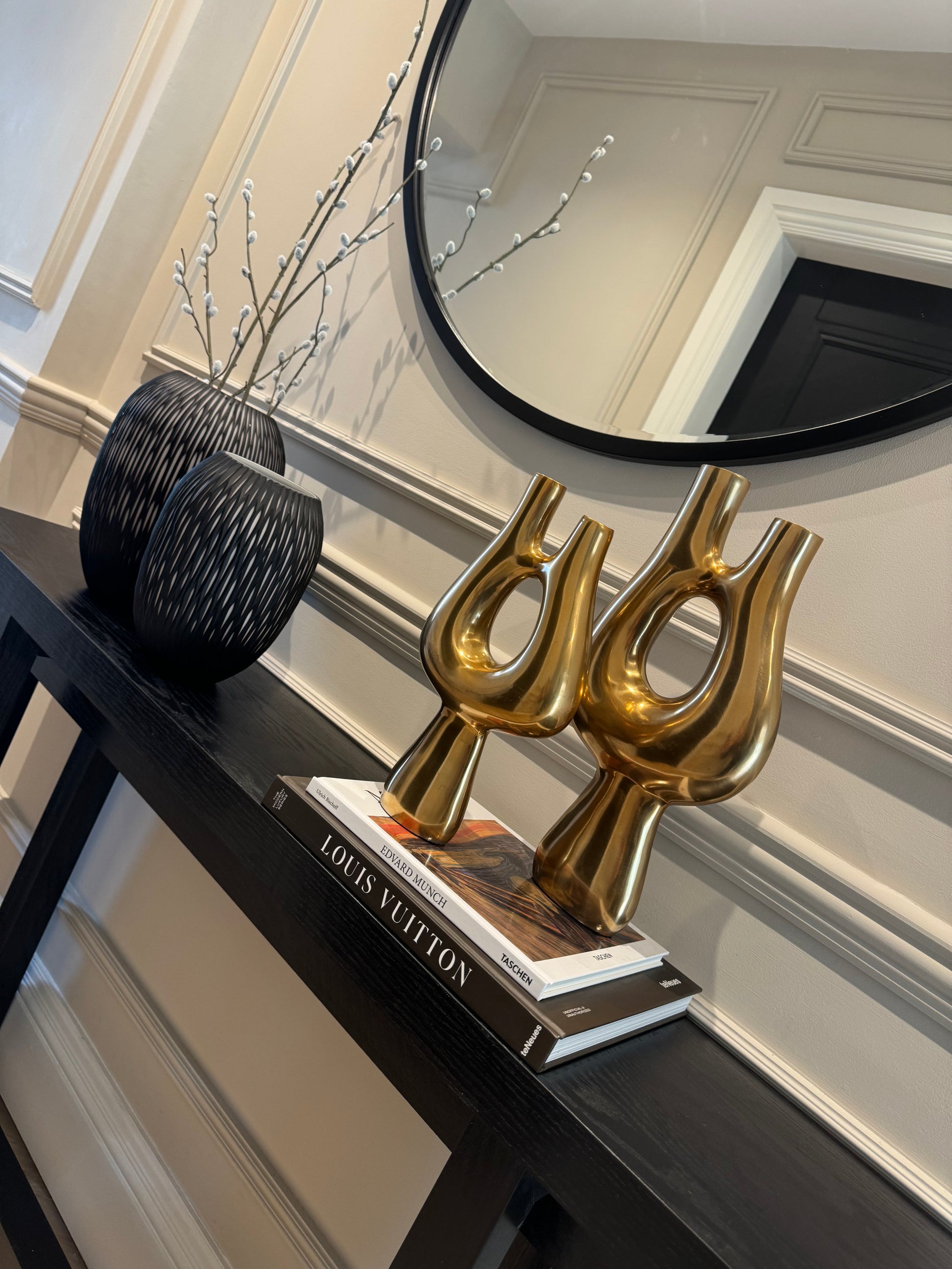 Whether displayed on its own as a sculptural accent or paired with dried floral arrangements, the KOTANI vase effortlessly complements both modern and traditional décor. Its warm metallic finish and refined form make it an ideal choice for creating a timeless, curated look in any space.