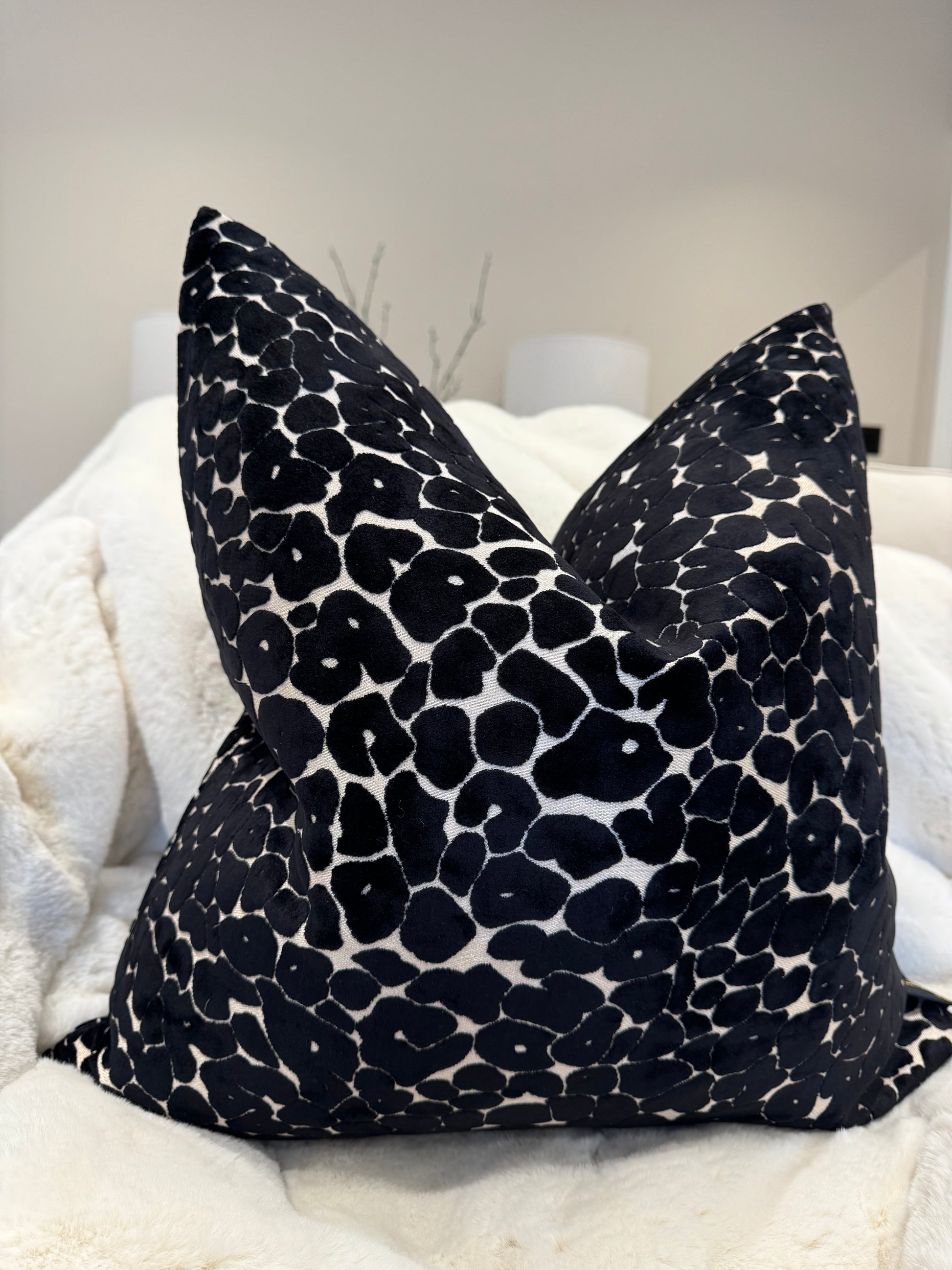 - Design: Featuring a striking leopard pattern intricately cut into premium black velvet, this cushion exudes a rich texture and a sense of modern glamour that instantly elevates your decor.