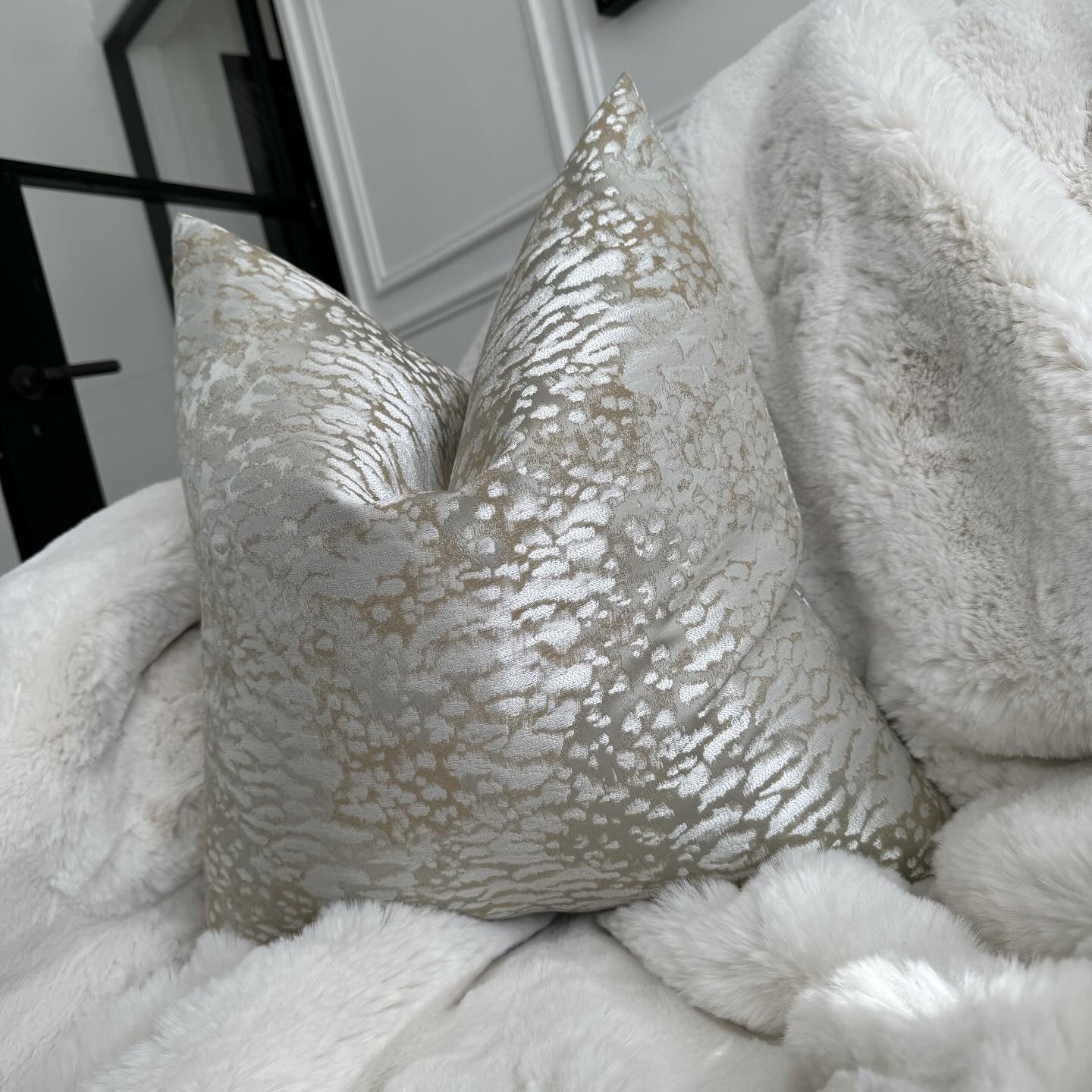 Introducing the Neptune 20" cushion, a celestial-inspired masterpiece designed to bring an ethereal touch to your home decor. Embrace the beauty of the cosmos with this luxurious cushion, featuring a mesmerising blend of silver, gold, and white tones delicately intertwined in a cloud effect shine detailing.