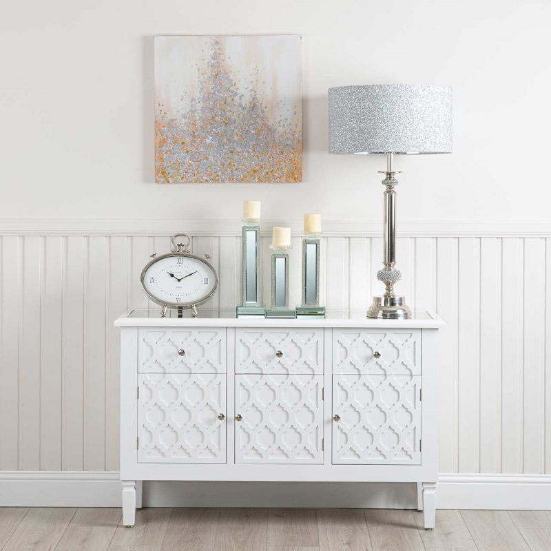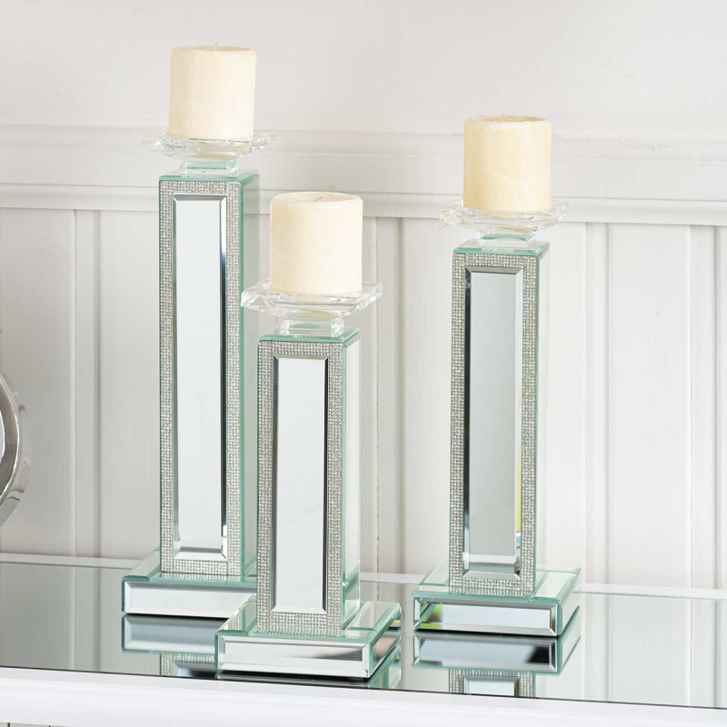 Stunning mirrored crystal detail large mirrored tealight holder. Also available in two other sizes. Style individually or together as a set.