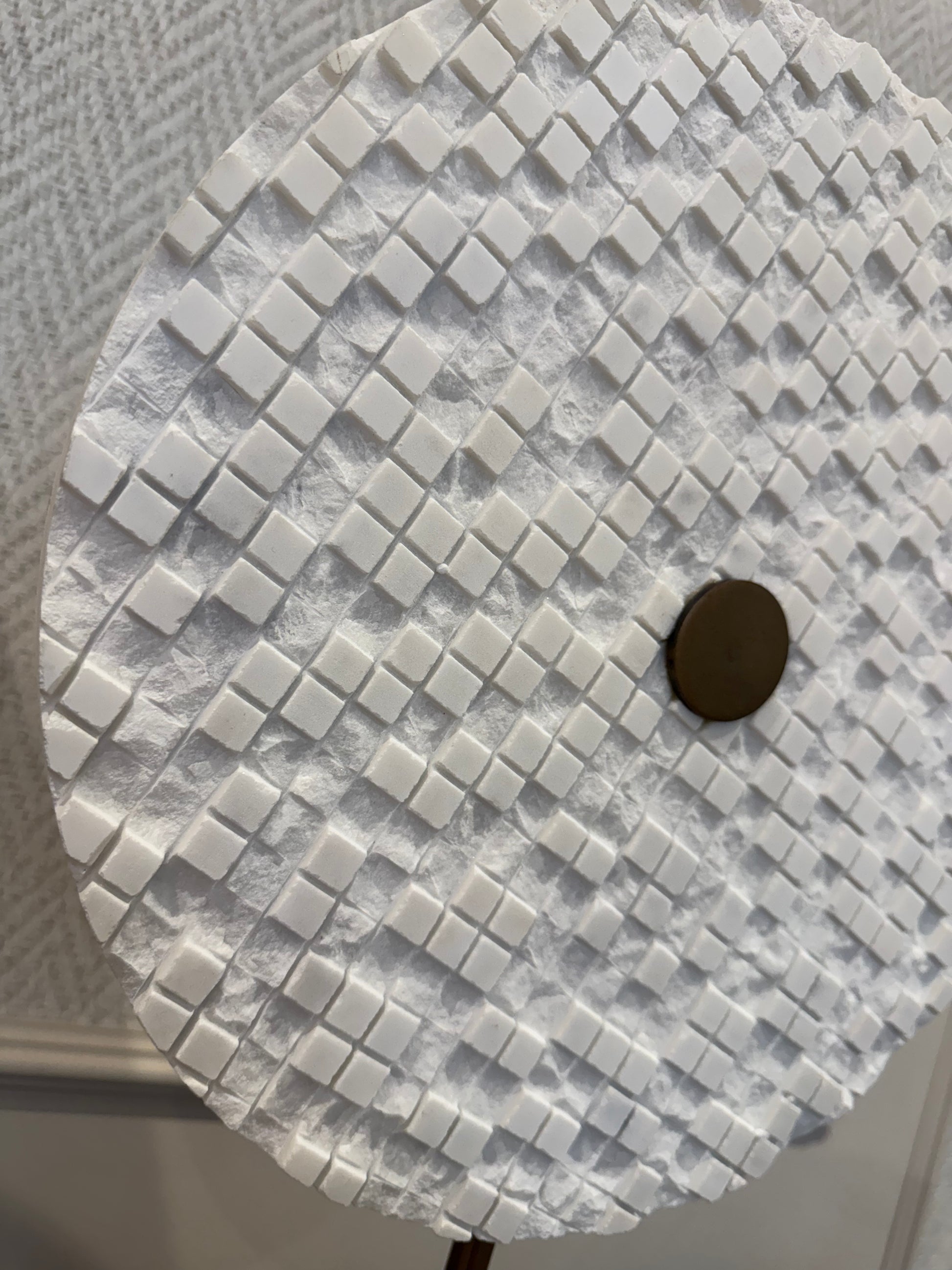 Its sculpted form in marble white contrasts beautifully with the antique bronze base, creating a harmonious blend of modern elegance and classic charm. The warm bronze tones add depth and character, while the smooth white finish brings a sense of purity and balance.