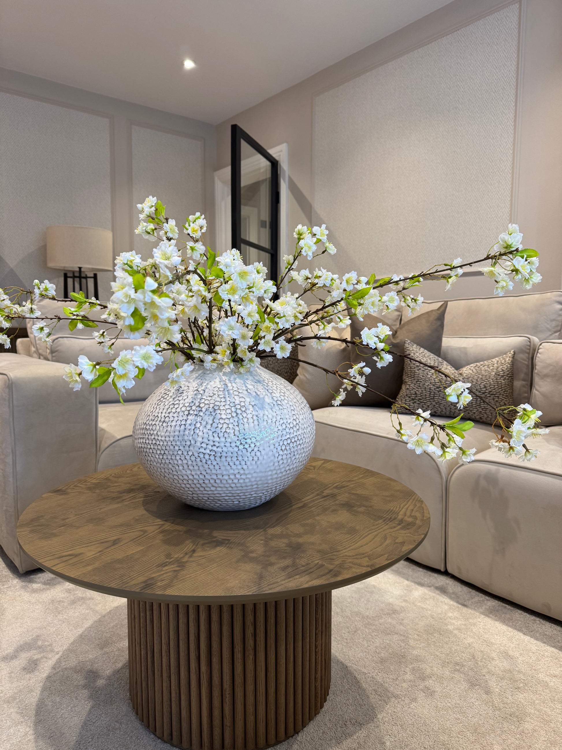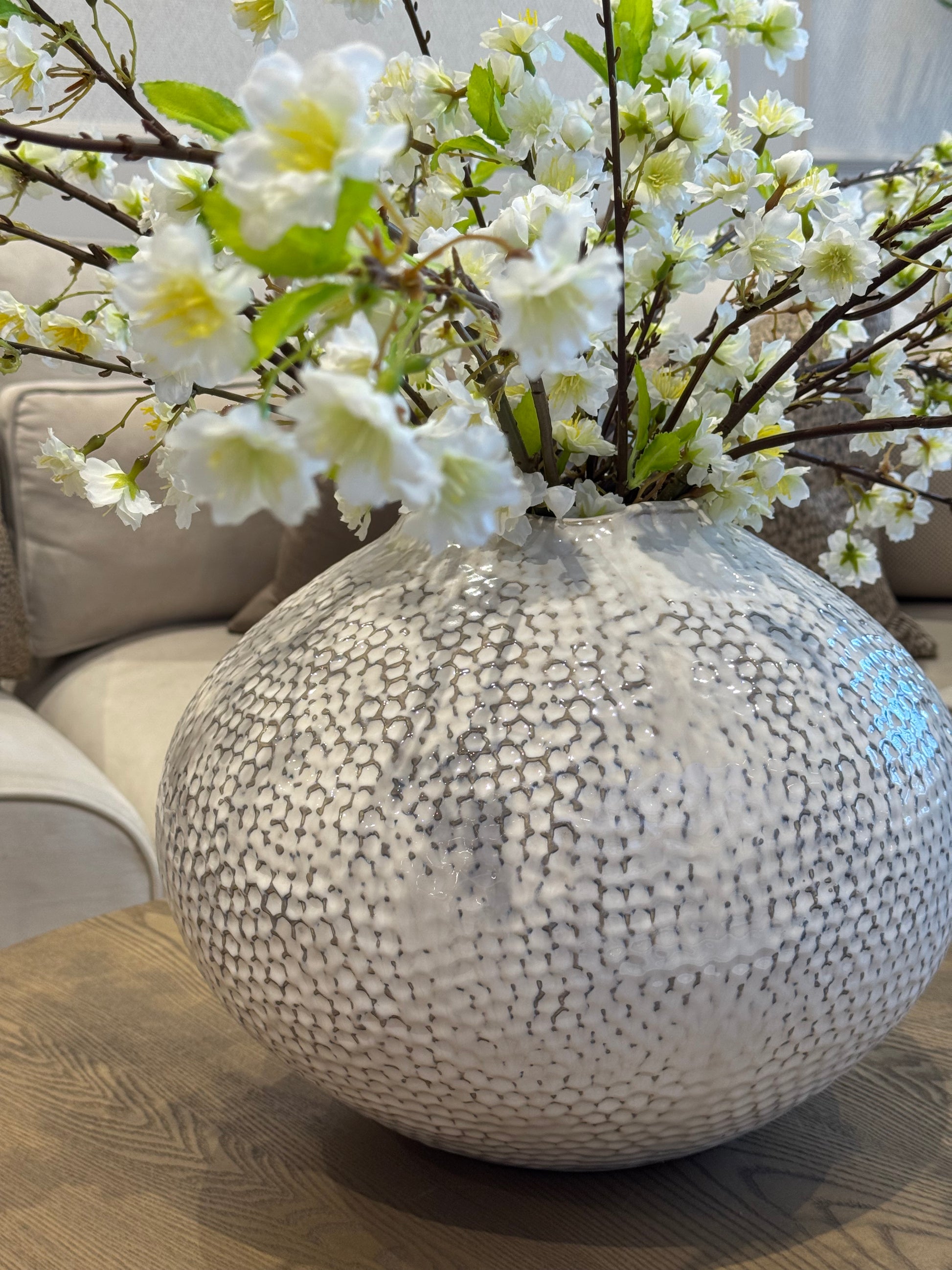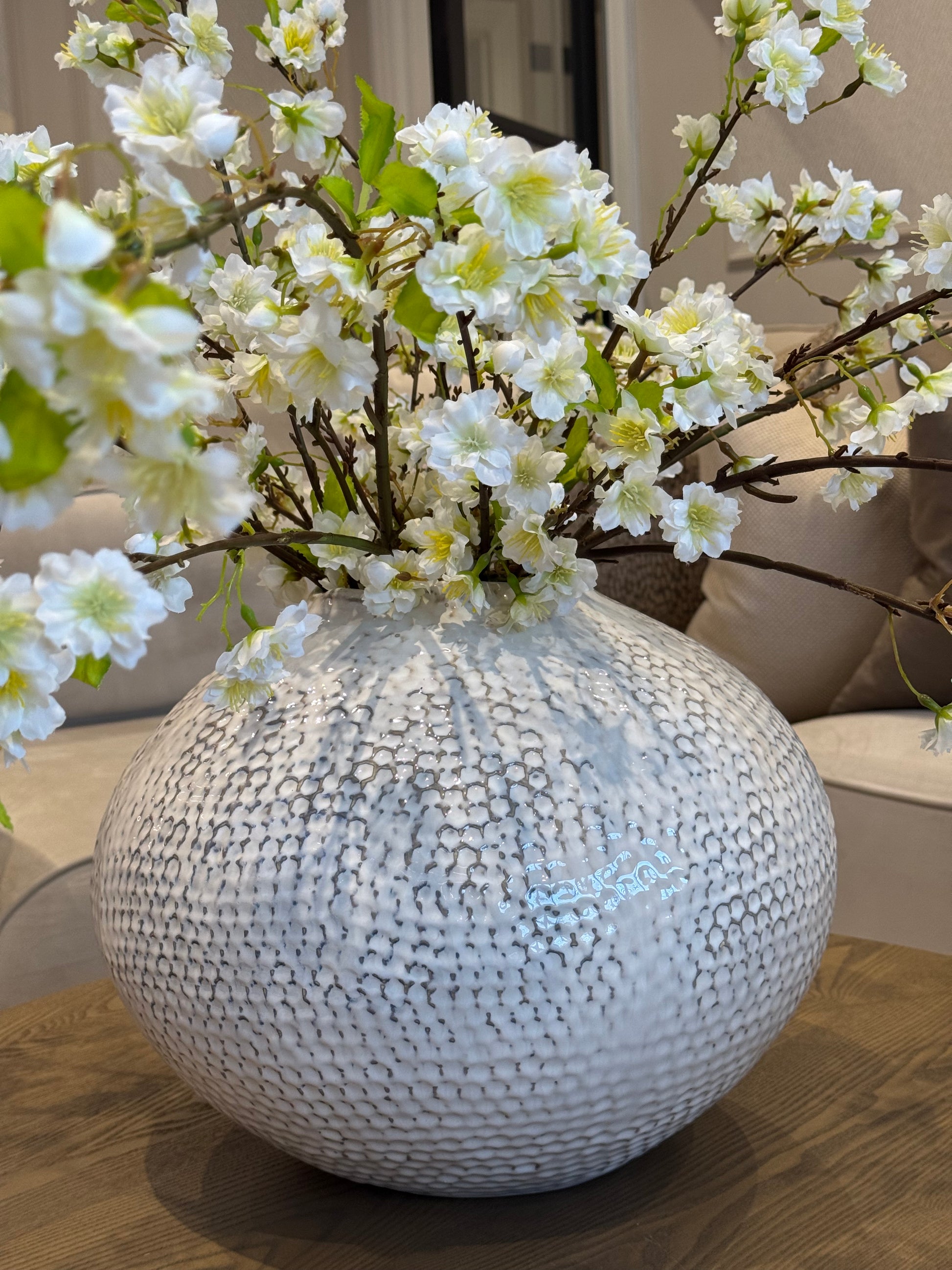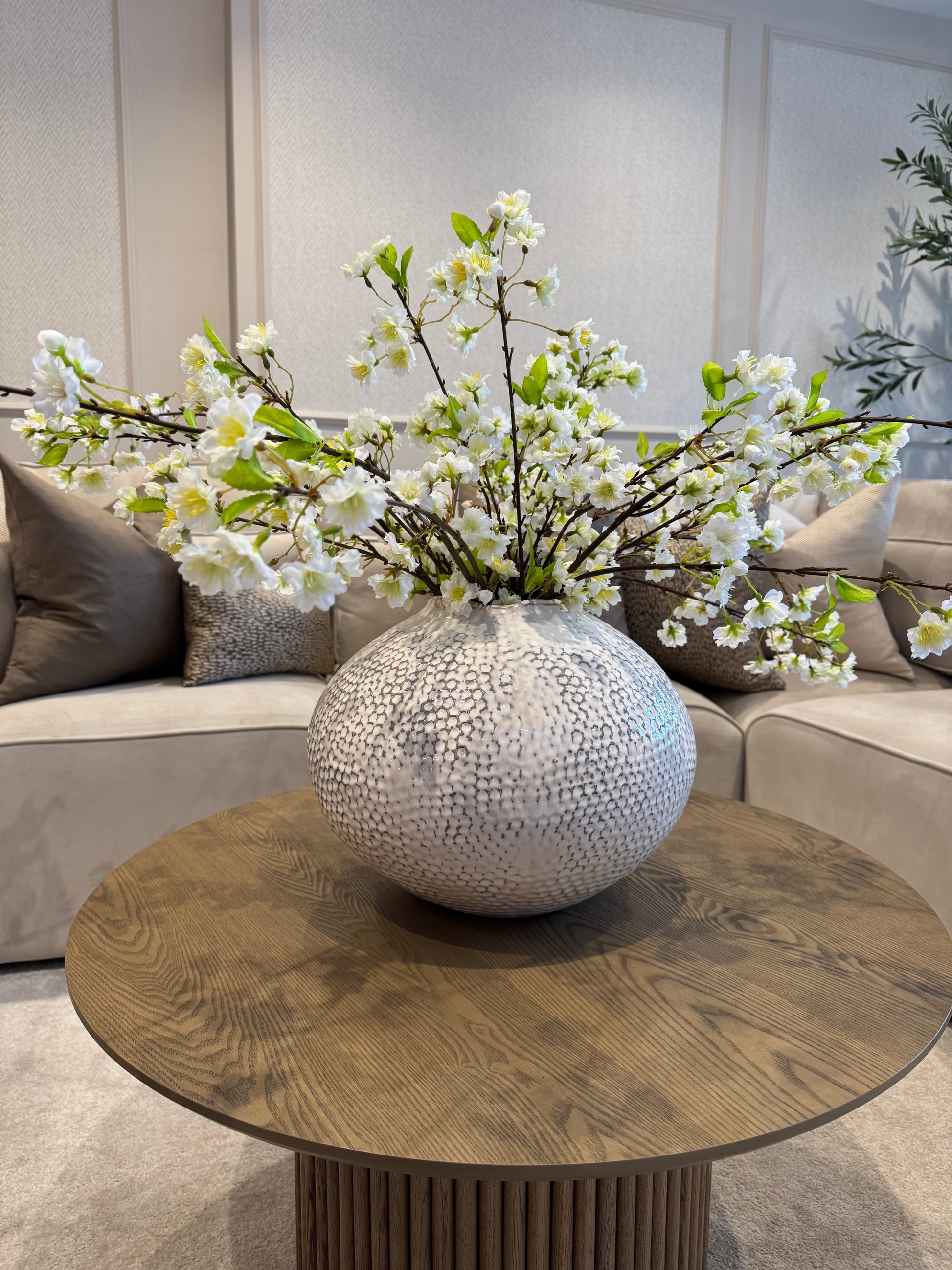Where contemporary design meets practical luxury — the Zaffera Caldron Vase is a true statement piece, perfect for elevating modern interiors or retail environments. Its fluid contours and sculptural form create a sense of movement, while the multi-dimensional surface adds depth and tactile interest.
