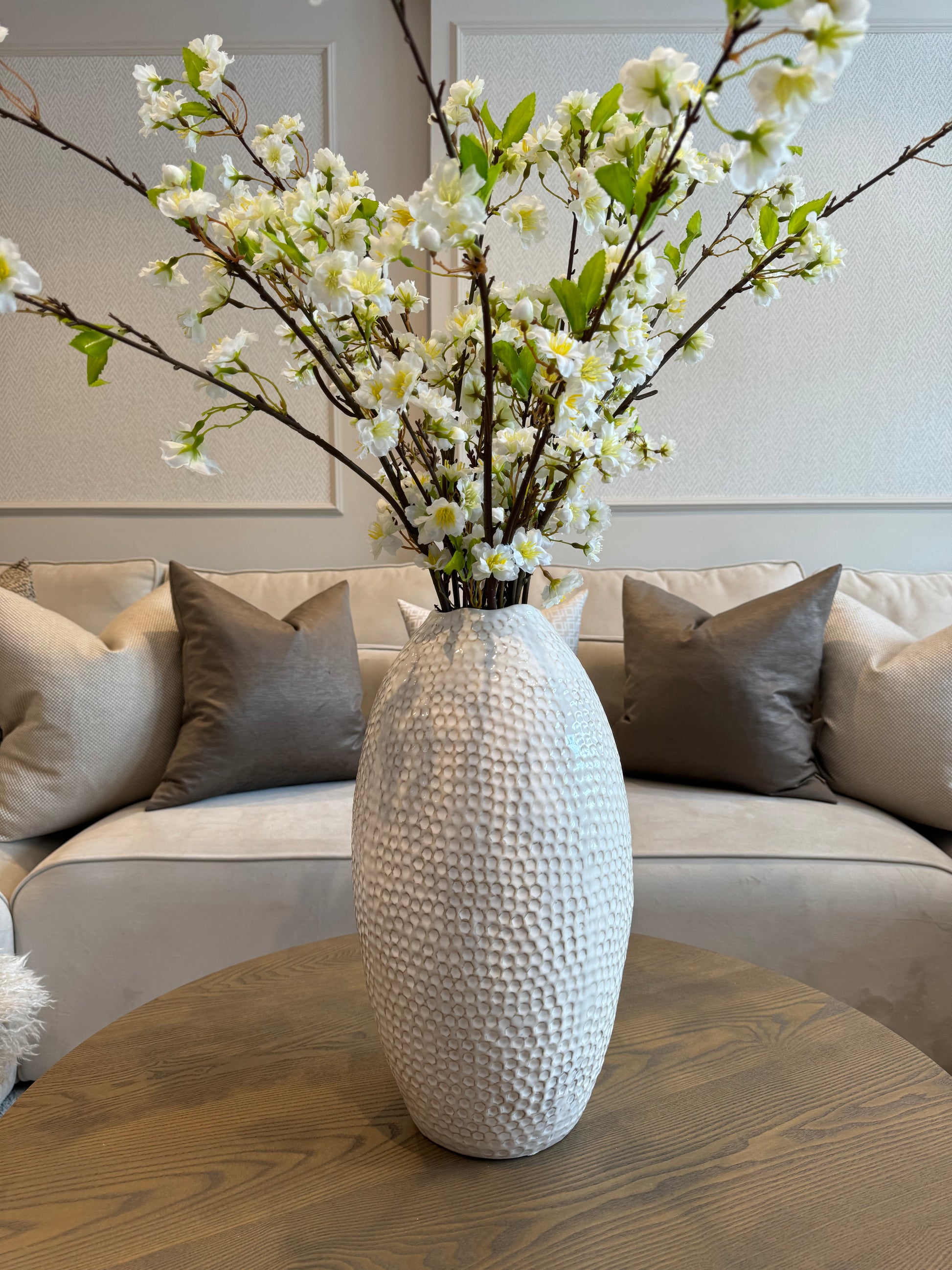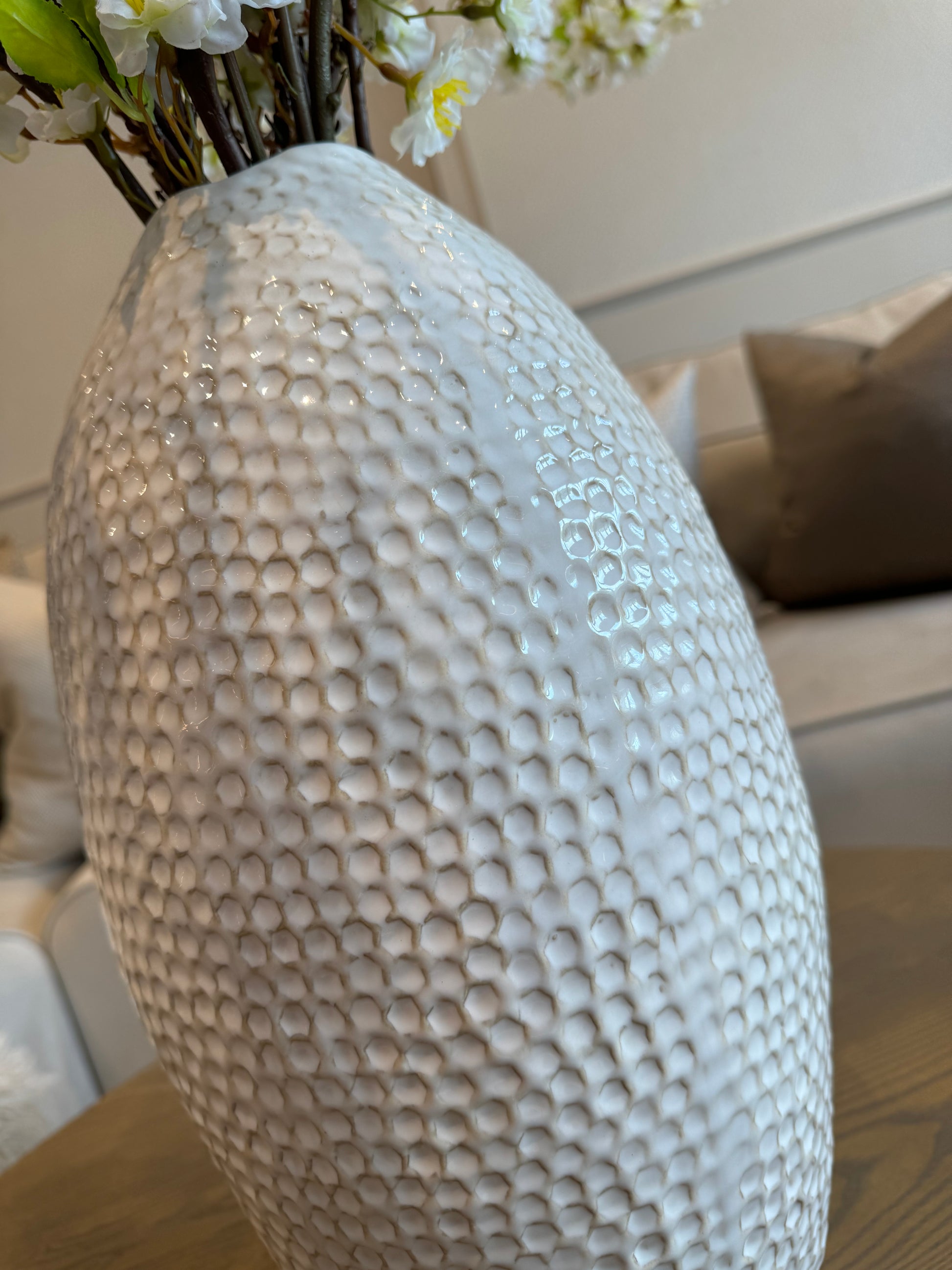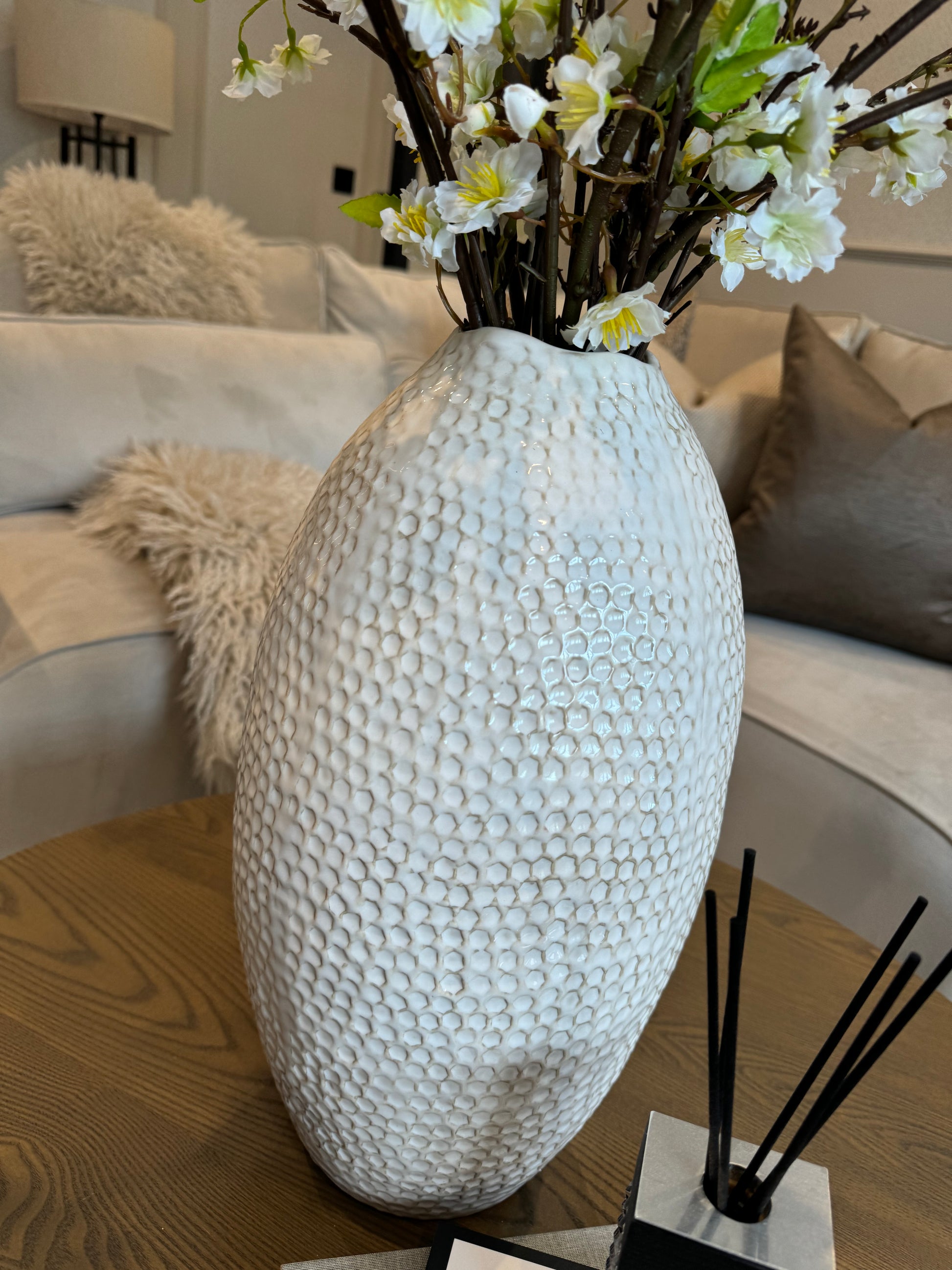 Where contemporary design meets practical luxury — the Zaffera Olpe Vase is a true statement piece, perfect for elevating modern interiors or retail environments. Its fluid contours and sculptural form create a sense of movement, while the multi-dimensional surface adds depth and tactile interest.